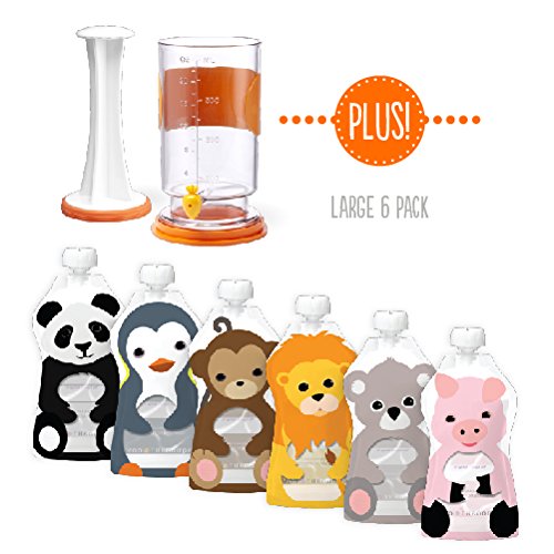 - INCLUDES 6 REUSABLE POUCHES!!!! - NEW LARGER SIZE! - NEW ANIMALS! - NEW ONE PIECE EASY-GLIDE PLUNGER!