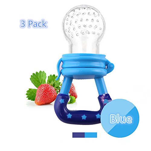 - Product Name: Baby Food Feeder 3 Pack Fruit Food Silicone Nipple Teething Toy Reusable Aching Gums Pacifier,Blue